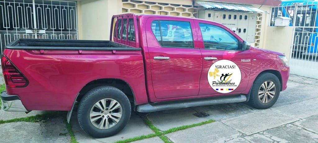 PARTENAIRES, en partie aidé par le don généreux de son trésorier Jérémy, la payé pour moitié cette belle fourgonnette rouge à la Fondation Jonathan en Équateur.